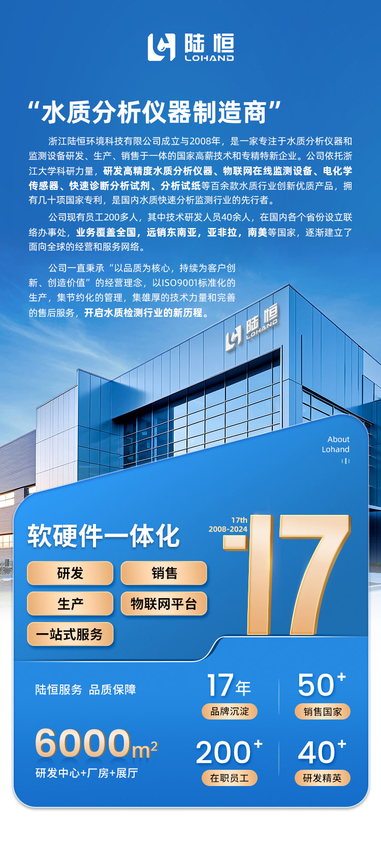 1:浙江陆恒环境科技有限公司【原:杭州陆恒生物科技有限公司】成立于2008年,是一家专注于水质分析仪器和在线监测设备研发、生产、销售于一体的国高企业。