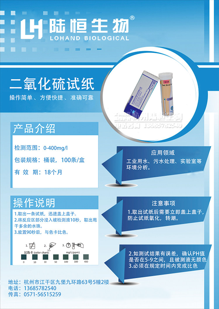 名称:二氧化硫快速检测试纸 消毒残留二氧化硫快速测试盒