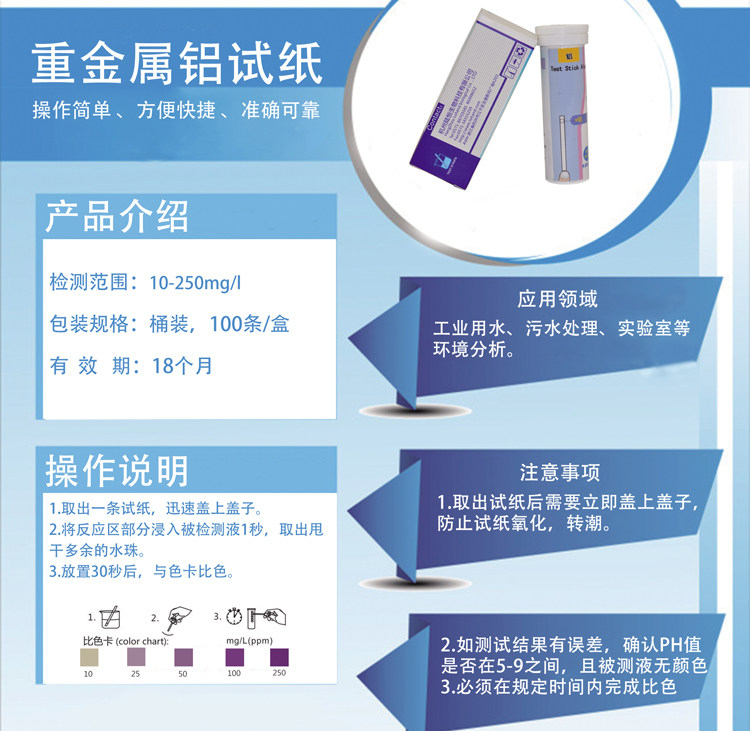 名称:铝检测试纸 重金属铝离子残留分析试纸测试条